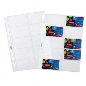 Busta realizzata in polipropilene a 10 tasche consente l'archiviazione di schede telefoniche e cards varie. formato esterno 215x297mm interno 85x54mm (10tasche per busta)