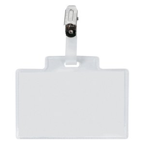 Porta cartellini congressi in plastica cristallo, spessore 18/100mm. completo di clip in metallo, senza cartoncino. dimensioni 95x60mm.