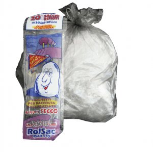 20 sacchi trasparente neutro 50x60cm 30lt 16 micron rolsac