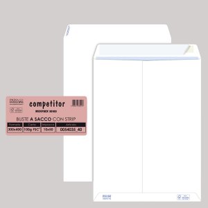 50 buste a sacco bianche 300x400mm 80gr adesiva competitor pigna