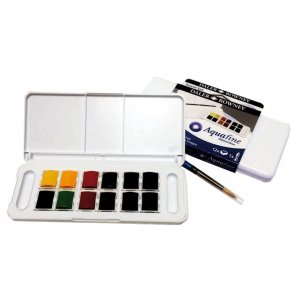 Acquerelli aquafine scatola in plastica pocket 12 godet piu pennello daler rowney