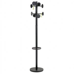 Appendiabiti dalla struttura in metallo e abs con base appesantita. dotato di 8 supporti abito, 2 ganci per accessori e portaombrelli con vaschetta raccogligoccia. dimensione: d37x175cm. tubo d38mm