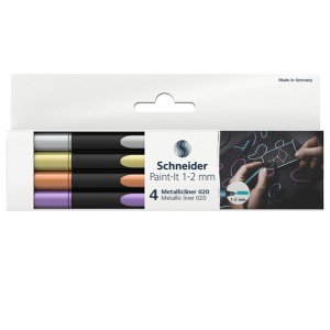 Astuccio 4 pennarelli metallic liner 020 punta 1-2mm colori assortiti schneider