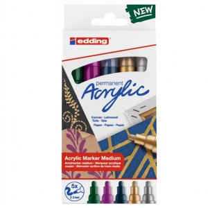 Astuccio 5 marcatori acrilici edding 5100 medium festa