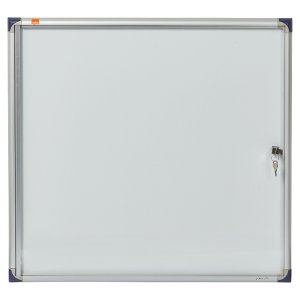 Bacheca extrapiatta per esporre comunicazione in corridoi e passaggi stretti. cornice in alluminio anodizzato con angoli in colore blu. anta munita di serratura con due chiavi in dotazione. l'anta si apre con angolo di 135 . telaio con fondo in metallo bianco brillante. profondita' interna per 11mm. fornita con normali fissaggi per il montaggio a parete. dimensioni: 81,5x67 e' possibile esporre 6 fogli f.to a4
