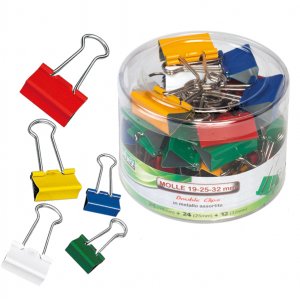 Double clip assortite in 3 misure (19mm; 25mm; 32mm) e 5 colori.