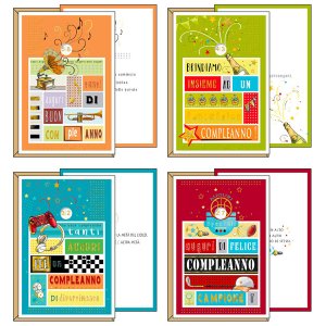 Biglietto buon compleanno c/ruota tema maschile 4 soggetti ass. kartos