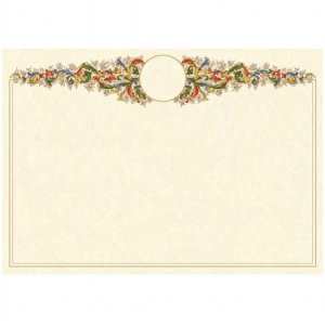 Diploma in carta pergamena da 160gr avorio con stampa offset con decoro in oro in polvere.
