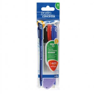 Blister 4 penne a sfera cancellabile tratto cancellik