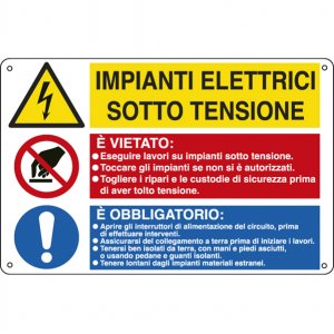 Cartello alluminio 50x33,3cm 'impianti elettrici / e' vietato../ e' obbligato'