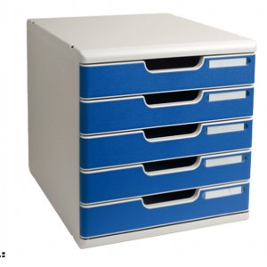 Modulo a 5 cassetti da 5,4cm formato 35x28,8x32cm. sistema di archiviazione elegante e funzionale per l'archiviazione dei documenti formato a4+. i vari moduli a4 e a3 sono sovrapponibili ad incastro. ogni modulo puo' variare come numero e altezza dei cassetti. dotato di perfetto scorrimento dei cassetti con blocco d'arresto, pratica impugnatura e porta etichetta. fornito con clip e tappini per l'assemblaggio.