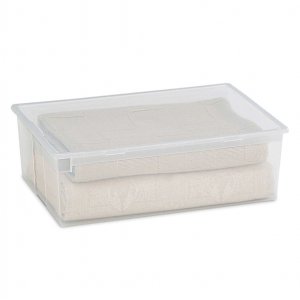 Contenitori multiuso in plastica trasparente con coperchio. ideali riporre oggetti, documenti cartelle e ogni altra cosa debba essere riordinata. dotati impugnature laterali per il trasporto. impilabili stabilmente.