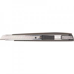 Sicurezza a bloccaggio automatico. con spezzalama. Larghezza lama: 8 mm, Meccanismo bloccalama automatico, impugnatura in alluminio, Dimensioni 14X2X1cm