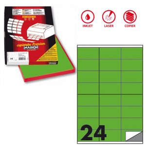 Etichetta adesiva c/500 verde fluo 100fg in a4 (24 etichette da 70x36mm)