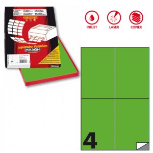 Etichetta adesiva c/519 verde fluo 100fg in a4 (4 etichette da 105x148mm)
