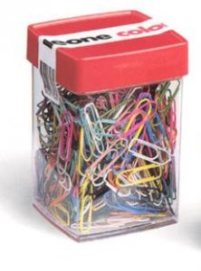 Barattolo di plastica per scrivania composto da 250 fermagli antiruggine colorati. I fermagli sono ricoperti con vernici metallizzate per un'eccezionale protezione alla corrosione e per permettere lo scorrimento sulla carta senza strappi. Colori assortiti vivavi e matalizzati. Misura n. 4 - 32mm. Marca Leone Dellera.