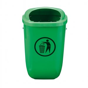 In polietilene ad alta densita' con protezione uv e parti metalliche in acciaio zincato. svuotamento mediante sganciamento dal supporto. puo' essere fissato al muro o su palo in acciaio zincato (cod.68301). dimensioni 40x34,8cm - h 74,5cm capacita' 50lt.
