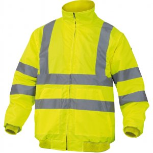 Giubbotto alta visibilita' oxford spalmato pu. fodera pile poliestere. maniche staccabili. cuciture impermeabili. cappuccio fisso. collo foderato pile. polsini e parte bassa bordo a coste.