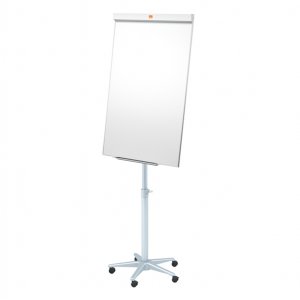 Portablocco mobile su base a 5 ruote con superficie in acciaio laccato 100x67,5cm, magnetica scrivibile. barra fermafogli a ribalta e vaschetta porta accessori in metallo. ganci portablocco regolabili per adattarsi a blocchi di ogni formato. altezza regolabile.