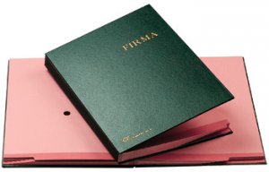 Robusta copertina rivestita in dermoide. interno a 14 intercalari in tenace cartoncino assorbente. dorso a soffietto rivestito imitlin. formato utile 240x340mm.