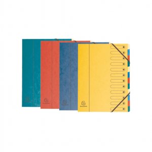 Classificatore a 12 scomparti con copertina in cartoncino lustre' 400gr e interni in cartoncino 225gr dai colori vivaci. dorso estensibile, chiusura con elastico. f.to utile 24x32cm.