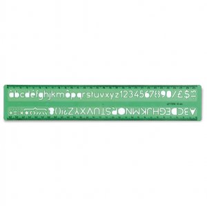 Normografo in k-resin colore verde. adatto per scrivere con la matita o la china.