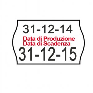 Rotolo da 1.000 etichette a onda 26x16mm con dicitura ''data di produzione / data di scadenza''. confezione 10 rotoli.