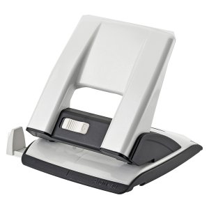 Perforatore a 2 fori in metallo con guida regolabile ed inserti in abs. di robusta costruzione, consente di perforare fi no a 30 fogli con il minimo sforzo.dotato di meccanismo di sicurezza e salva spazio (blocco/sblocco impugnatura). pratico e veloce grazie al pulsante preposto posizionato sul fronte dellimpugnatura.