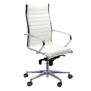 Poltrona direzionale con schienale alto. struttura e braccioli in acciaio cromato, rivestimento in pelle. base in acciao sezione ellittica. meccanismo multiblock oscillante con fulcro avanzato, regolazione in altezza con pistone a gas (corsa 11cm). misure: h 105-116cm l 58cm p 68cm. (h terra<->seduta 47-58cm). 16kg.