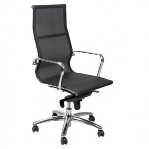 Poltrona direzionale adatta ad un uso intenso. base in acciaio cromo d66cm. struttura in acciaio tubolare ellittico cromo. 5 ruote in nylon d5cm. sedile in rete. braccioli inclusi. meccanismi: elevazione a gas, meccanismo oscillante con blocchi. schienale fisso con supporto lombare. altezza totale --> 109-119cm. larghezza sedile -> 48cm