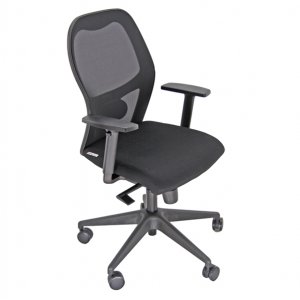 Seduta ergonomica con meccanismo synchro con 4 blocchi anti shock a contatto permanente con sedile traslabile. supporto lombare regolabile. schienale in rete portante e sedile in memory foam con rivestimento no flame. base in nylon, braccioli regolabili. elevazione a gas.