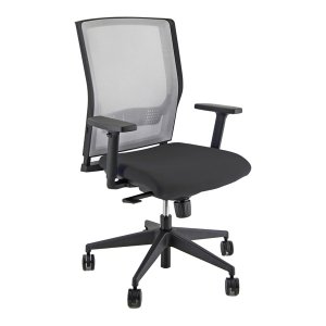 Poltrona semidirezionale h12 (adatta per uso intenso). schienale alto in rete grigia con supporto lombare regolabile. rivestimento seduta in acrilico 100%. braccioli regolabili e base in nylon. meccanismo syncro con 4 blocchi. meccanismo anti shock, meccanismo a contatto permanente. elevazione a gas.