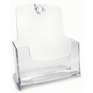 Portadepliant da parete e da banco a tasca singola f.to a5. design pulito ed essenziale, possono entrare uno nell'altro cosi' da guadagnare spazio sul banco. in materiale plastico perfettamente trasparente con dorso leggermente inclinato per garantire la massima stabilita' del materiale esposto. accoppiabili ad incastro e appendibili a parete. dimensione 17,3x19,7x10,1cm.