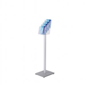 Serie economica. espositore con stelo in alluminio, base in mdf laccata. a 4 tasche a5, dimensioni 18x110cm