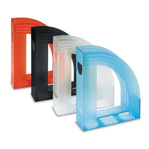 In plastica antiurto. contiene riviste, cataloghi, brochures. foro di estrazione e spazio per etichetta di identificazione. f.to utile: 7,5x24,5x30cm