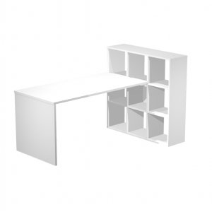 Postazione home-office l169 x p104 x h104cm. tavolo 140x69cm - h72,4cm. casellario 104x29,2cm - h 104cm. realizzata in melaminico bilaminato antigraffio e antiriflesso (sp. da 16 a 22 mm). lampia superficie di lavoro (140 x 69 cm, sp. 22 mm) e' sorretta da un lato da un solido fianco (sp. 22 mm) e dallaltro da una pratica libreria a 6 o a 9 caselle (sp. 16 mm). le librerie sono completabili con set 2 cassetti, set 2 antine in melaminico e antina in vetro collocabili allinterno delle caselle.