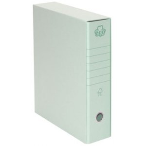 Realizzato in cartoncino riciclato al 100% e riciclabile, certificato FSC. Cartella e custodia in cartone riciclato da 1,5 mm di spessore e rivestito in carta riciclata da 80 g/mē. Meccanismo a leva a due anelli con pressino fermacarte. Dorso con stampa a righe per la personalizzazione e anello di estrazione in metallo. Formato esterno cm 28,5 x 8,5 x 35 h. Formato utile cm 23 x 32.
