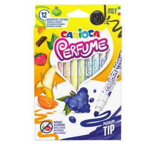 Pennarelli carioca perfume, ogni colore ha la sua essenza. contiene un inchiostro profumato e lavabile. gli aromi usati sono stati rigorosamente selezionati per richiamare le essenze naturali escludendo tracce di sostanze allergeniche.