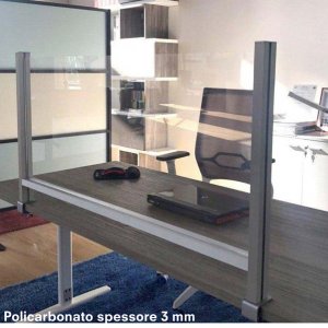 Schermo protettivo da scrivania h60xl82cm con morsetto alluminio silver