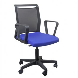 Sedia home/office smart light schienale in rete nero seduta blu c/braccioli