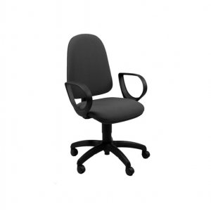Sedia operativa girevole con base in nylon nero d 60cm. struttura in acciaio nero e ruote in nylon d5cm. imbottitura del sedile e dello schienale in spugna e ppl, rivestimento in acrilico. braccioli inclusi. elevazione a gas. meccanismo a contatto permanente. schienale regolabile in altezza e profondita'. altezza totale da 98 a 110cm.