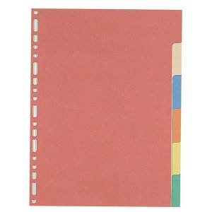 Separatore in cartoncino colorato in 6 differenti colori con foratura universale. composto da 6 tacche neutre.formato interno 21x29,7cm .il cartoncino e' personalizzabile con il sistema di stampa disponibile su internet www.favoritprint.it