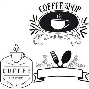 Set stencil a tema cibo e bevande, ideali per decorare le vetrine. fogli in carta dimensione a2.