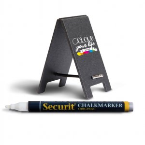 Set di 5 lavagnette segnaposto, flessibili e con superficie di scrittura doppia facile da pulire. anti urto e antigraffio, resistente ai raggi uv. fortite con 1 marcatore a gesso liquido. dimensioni: 8,5x5x0,5cm.