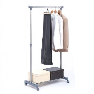 Stender colore grigio/cromo. capacita' 15kg. dotato di ruote e ripiano portaoggetti. dimensione 87,5x44cm - h96-167cm.