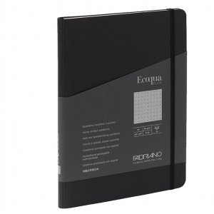 Taccuino c/elast. ecoqua plus spiral. a5 70fg. puntinato nero fabriano