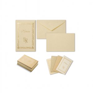 Confezione da 5 taschette monocolore 10 biglietti + 10 buste formato 9x14cm in 4 tonalita' di avorio-crema