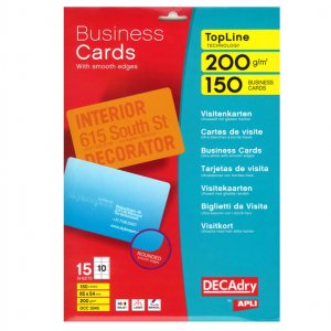 Cartoncino da 200gr. la taschetta contiene 15 fogli da 10 biglietti da visita (85x54mm) pretagliati con angoli arrotondati.