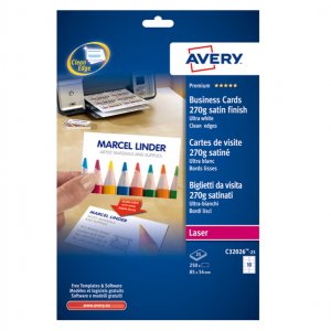 Taschetta 25fgx10 biglietti visita 85x54mm laser colori 270gr fronte/retro avery