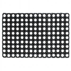 Zerbino in gomma 100%. utilizzabile sia come normale zerbino da ingresso che come base per una vera piattaforma antishock adatta per moltissimi fondi (cemento, terra battuta, ghiaia, erba, sabbia). si possono unire fra loro piu' lastre (attraverso gli appositi connettori). spessore 23mm.